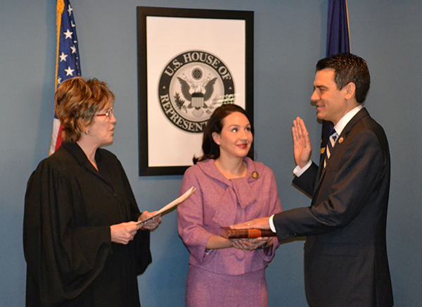 On Jan. 29, Chief Judge Barry Ted Moskowitz of the Southern District of California swore in Reps. Susan Davis, Scott Peters and Juan Vargas, all Democrats from the San Diego area. Judge Moskowitz also acknowledged Reps. Duncan Hunter and Darrell Issa, both Republicans, who were invited to take part but had schedule conflicts. The oaths of office were administered in the district courthouse in San Diego.