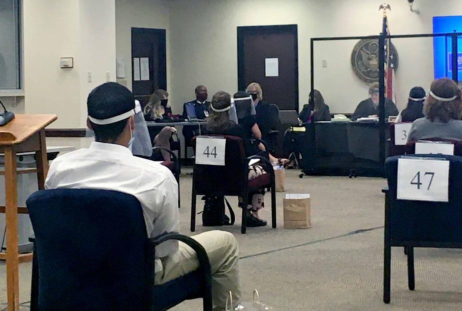 The report offered suggestions about the type and amount of personal protective equipment needed to accommodate jurors, the public, attorneys, witnesses, and members of the press; juror travel to and from the courthouse; social-distancing and deep-cleaning procedures for courthouse spaces; and seating of jurors and other participants in ways that would mitigate health risks.